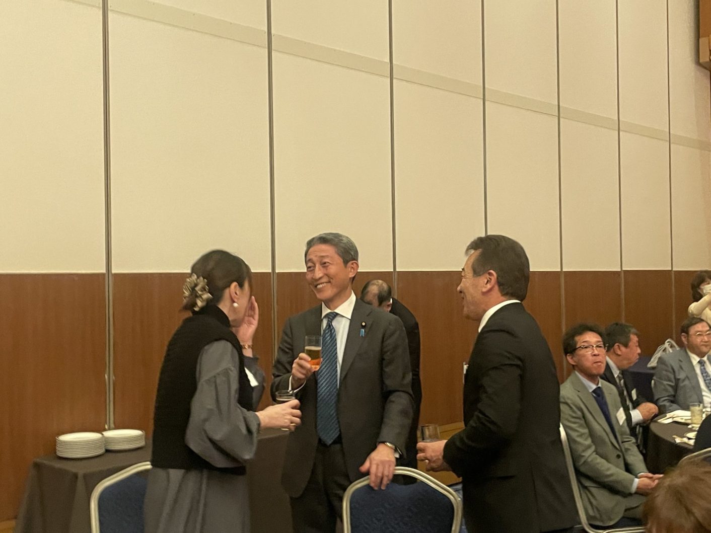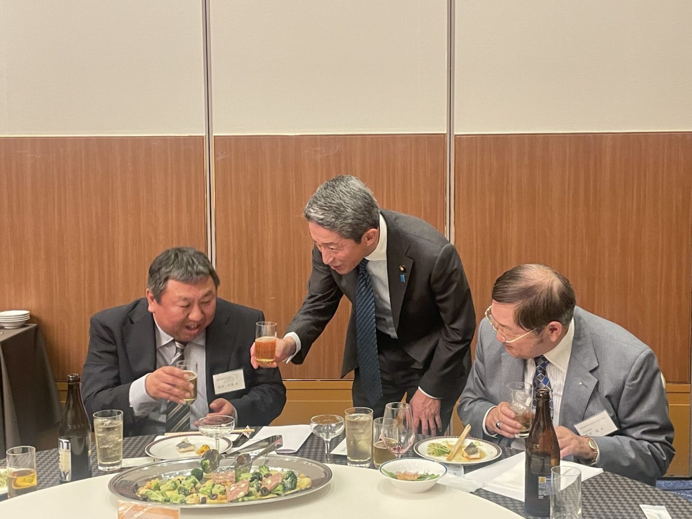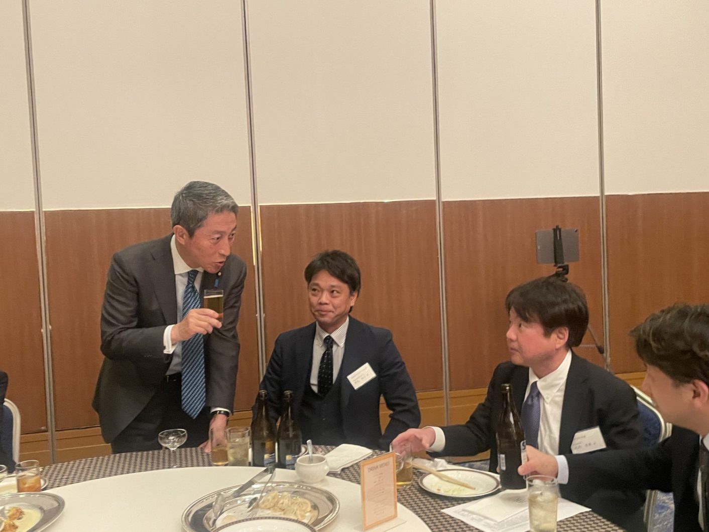乾杯後は、各テーブルに回り、皆様とともに意見交換をさせていただきました。