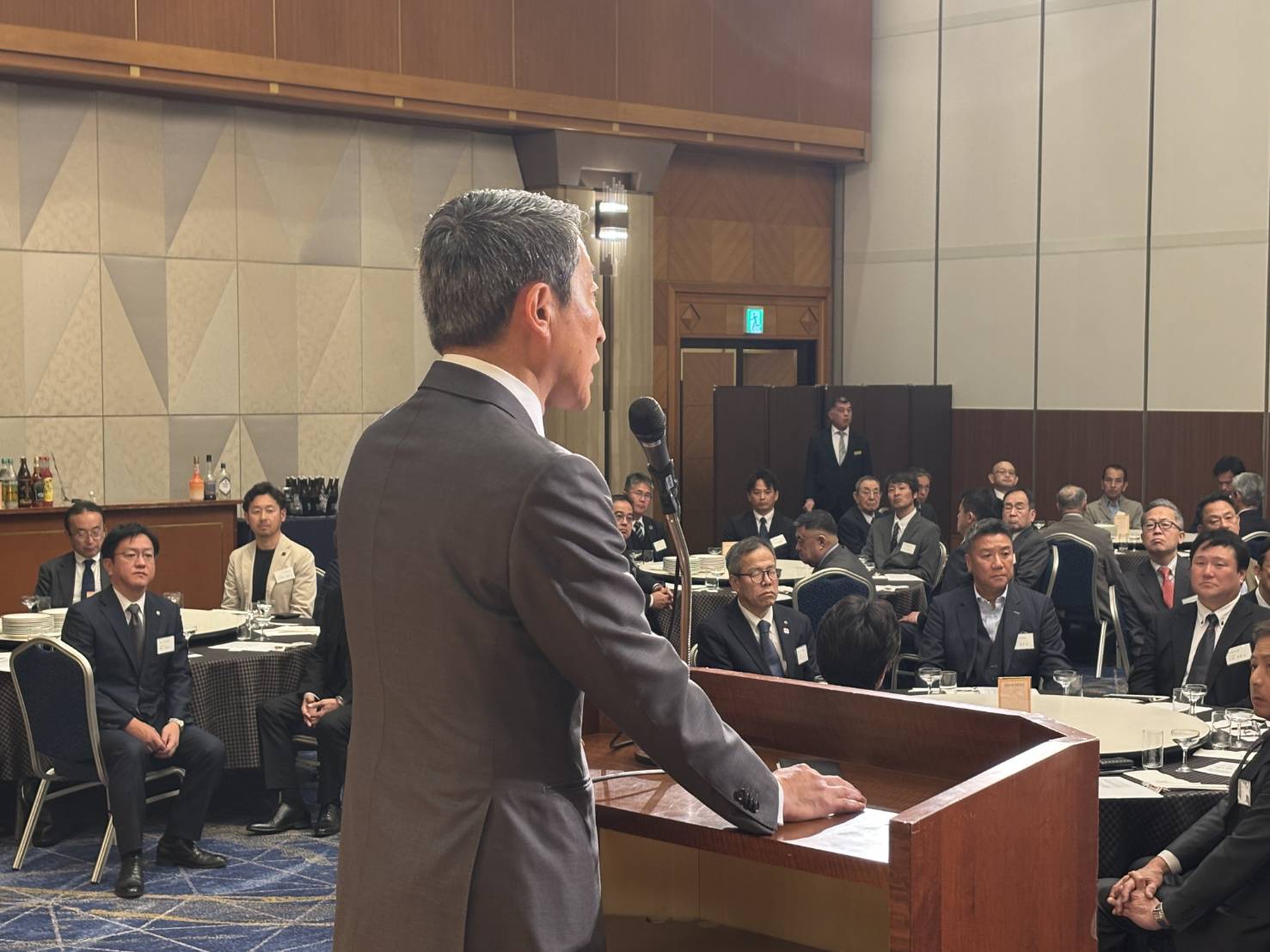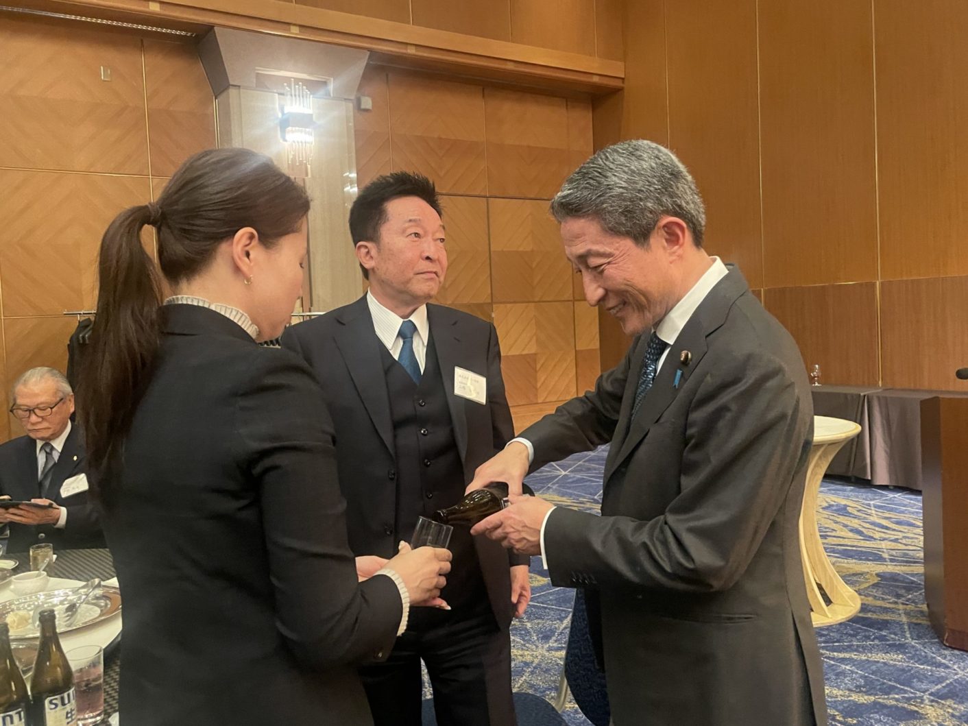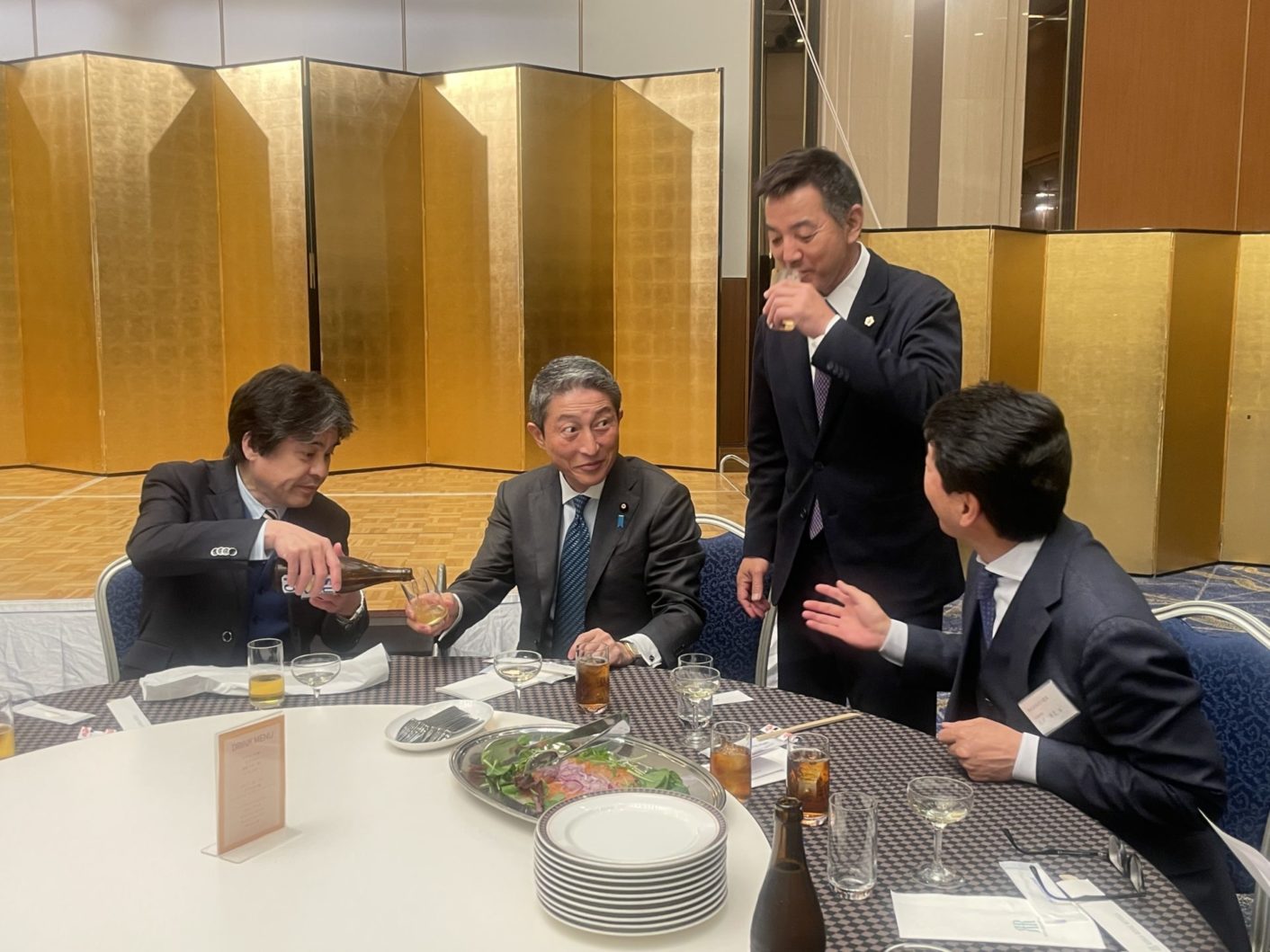 乾杯後は、各テーブルに回り、皆様とともに意見交換をさせていただきました。