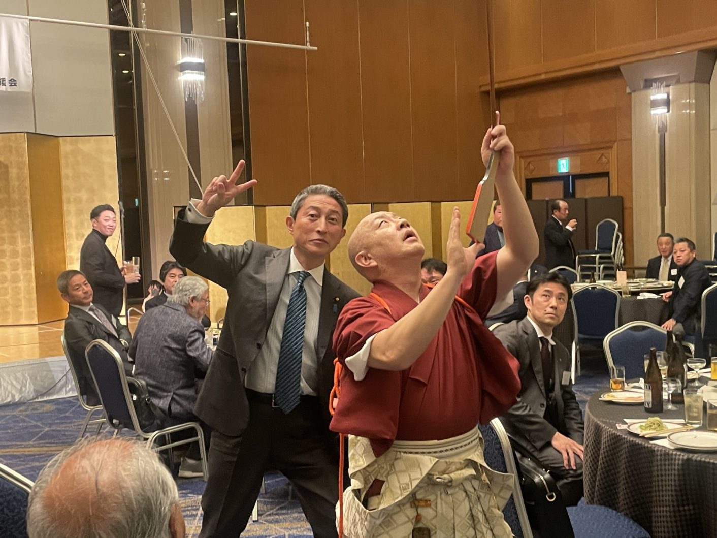 本日は、余興として博多独楽師 筑紫珠楽さん