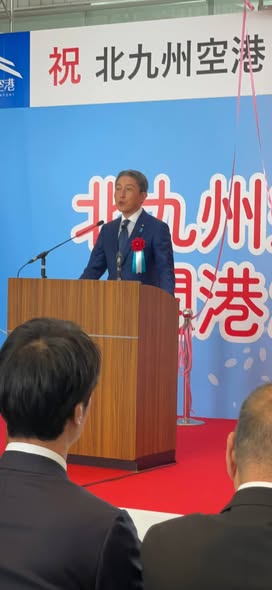 北九州空港は関門海峡の港湾整備事業で発生した浚渫(しゅんせつ)土砂を活用することで、埋め立て費用を安く抑えて20年前に完成し、本日、開港20周年記念式典に出席しました。
