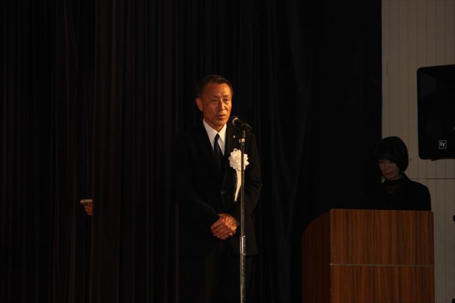 葬儀委員長の後藤 元秀 豊前市長のご挨拶の様子。