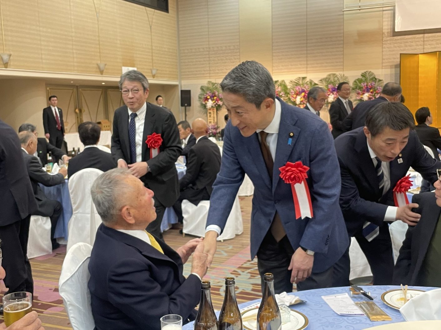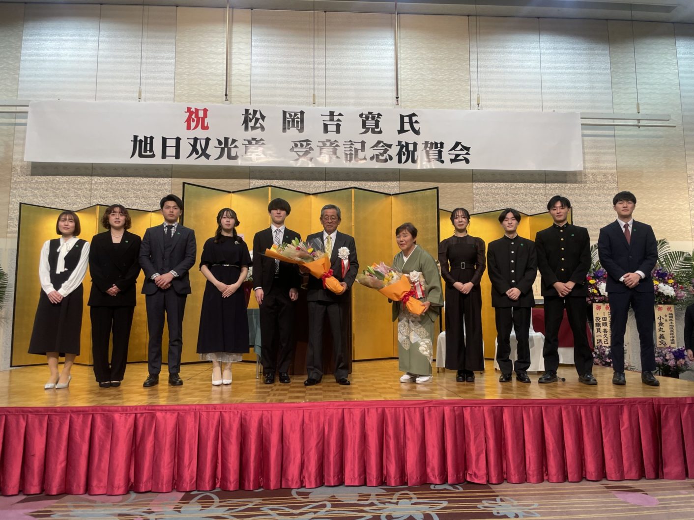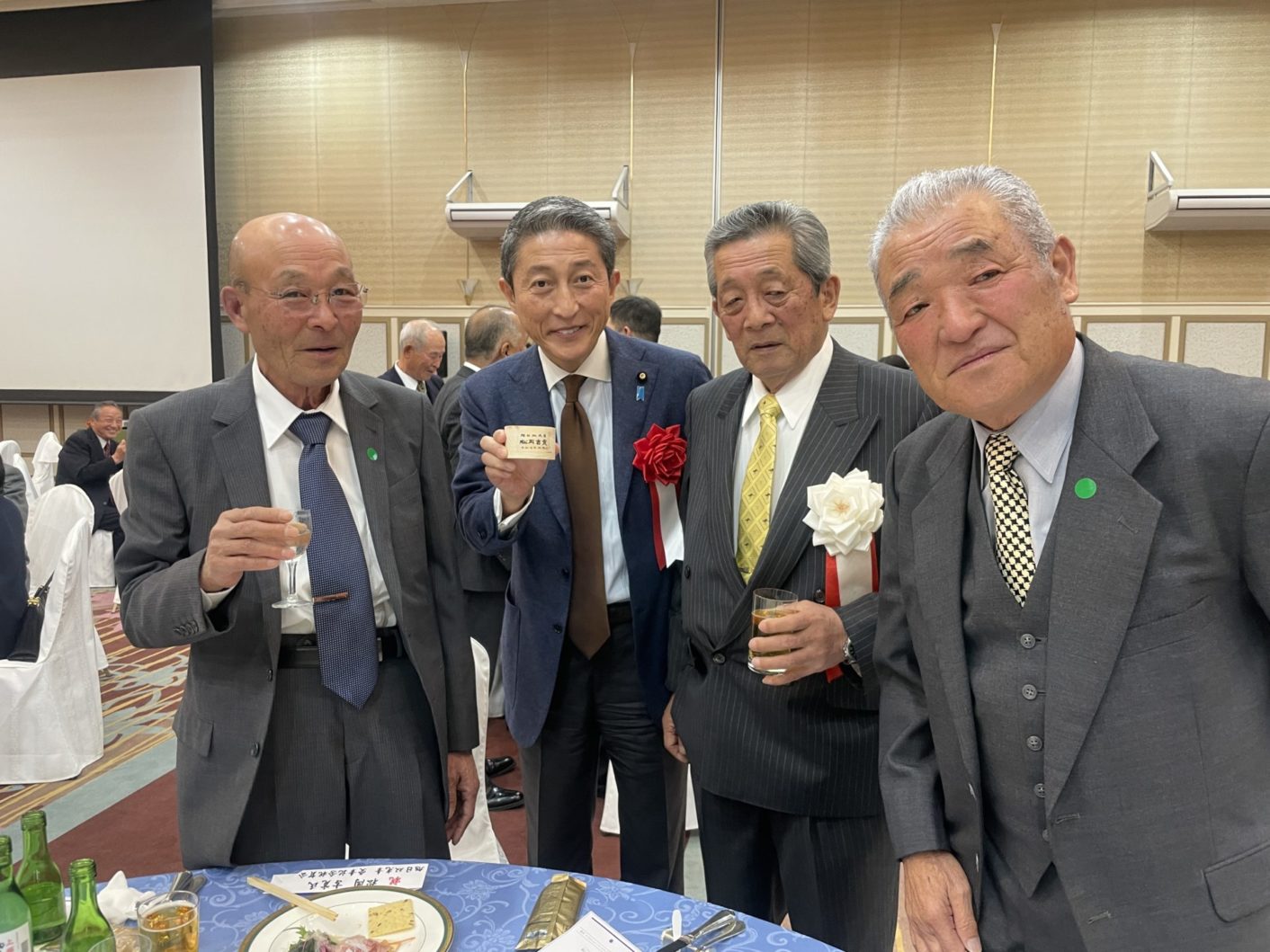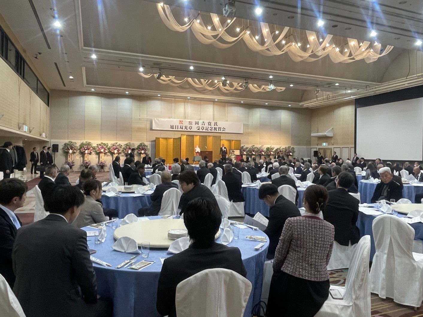 両筑土地改良区理事長 松岡 吉寛 様が、長年にわたり地域農業の発展と土地改良事業の推進に尽力された功績が高く評価され、令和七年秋の叙勲において旭日双光章をご受章され、祝賀会に参加いたしました。