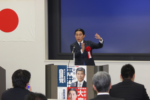 党員・党友の皆様に市・県・国が一体となって地域を盛り上げていくことを約束いたしました。
