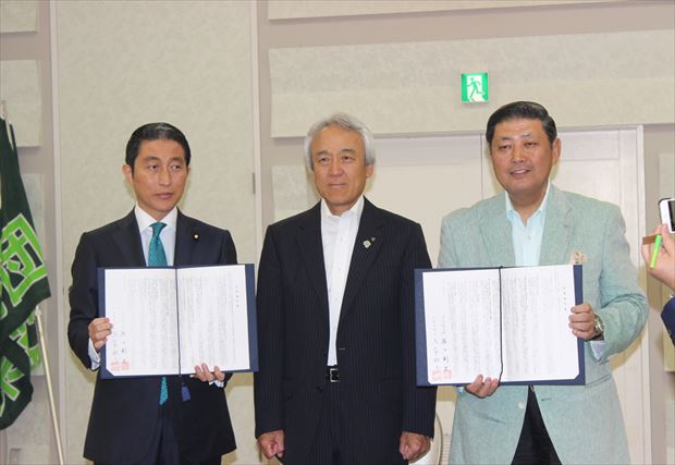 研修会に先立ち、自由民主党福岡県議団と10項目に亘る政策協定を結び調印式を行いました。
