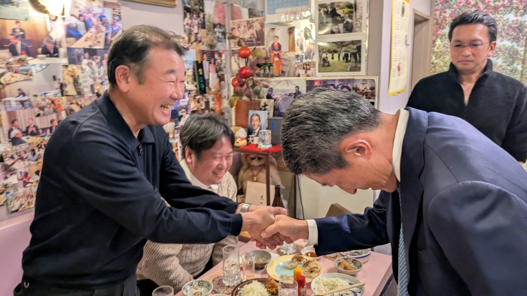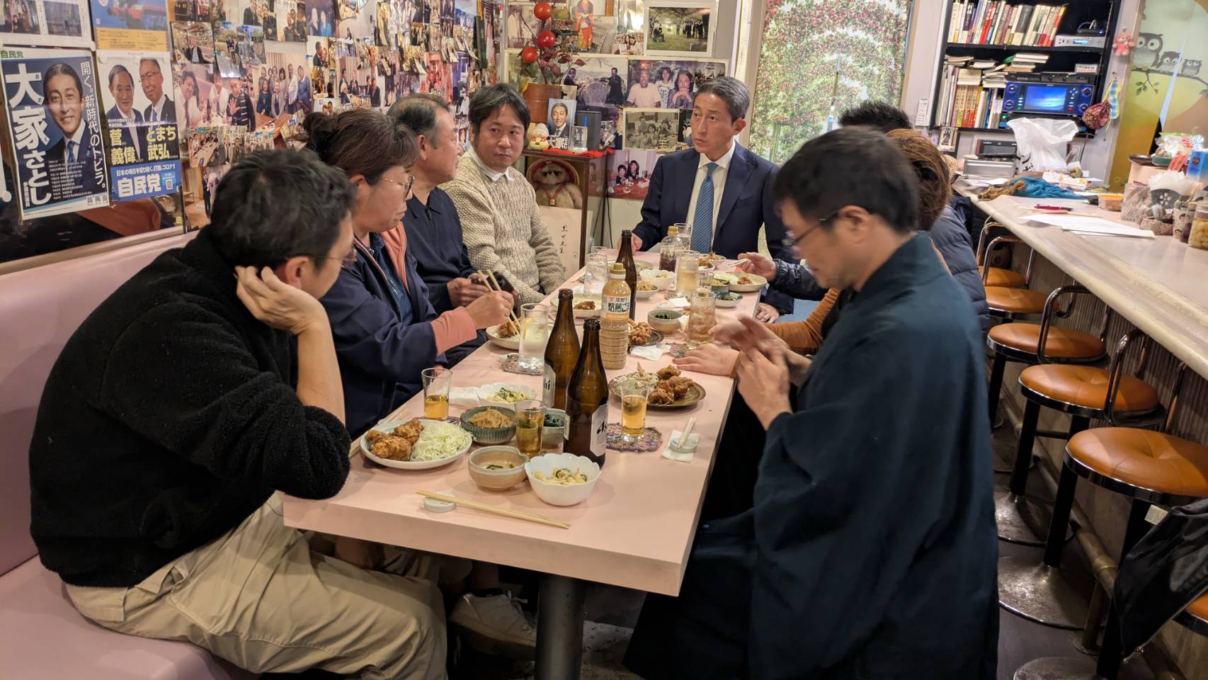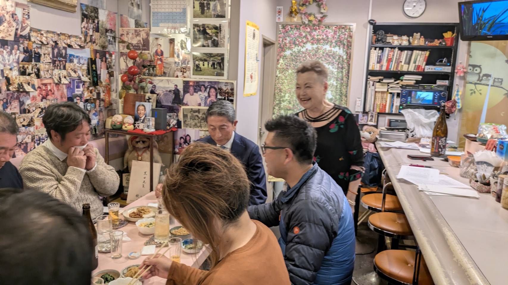 八幡東区中央町 ゆうげ夜狸(より)の魚本 清子ママを慕う有志の会「碧(あお)の会」の懇談会に参加しました。