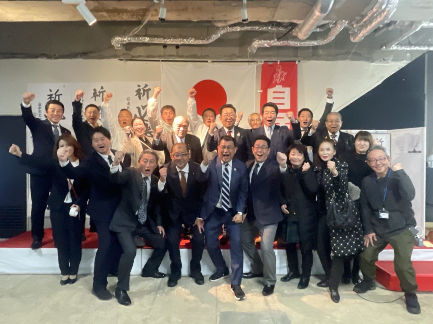 選対本部長代行として、バンザイ三唱をいたしました。