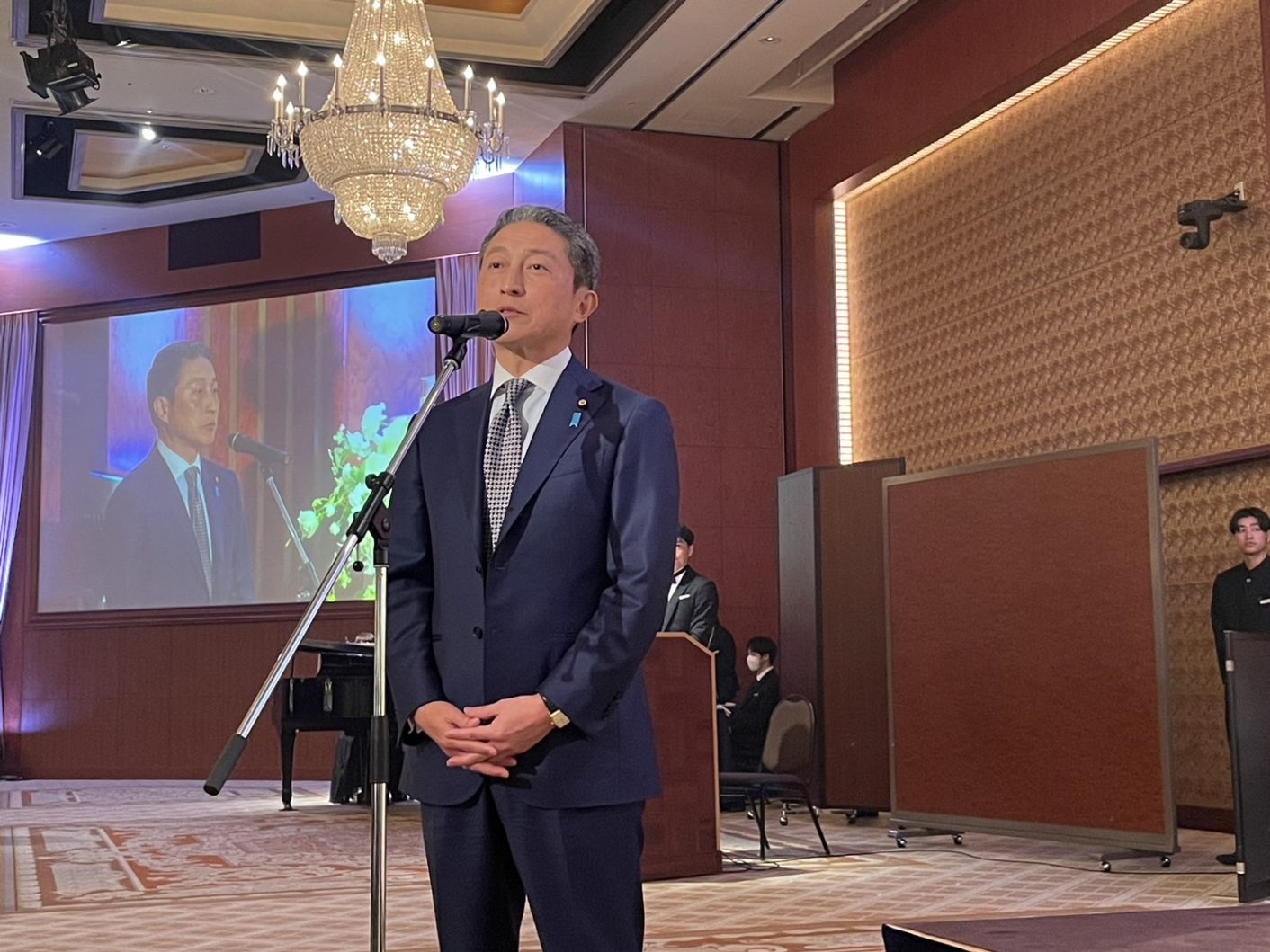 お父さまの金村 浩二 会長に、長年にわたり私の政治活動にご理解を賜っておりますご縁で、本日のおめでたいお席にお招きいただきました。